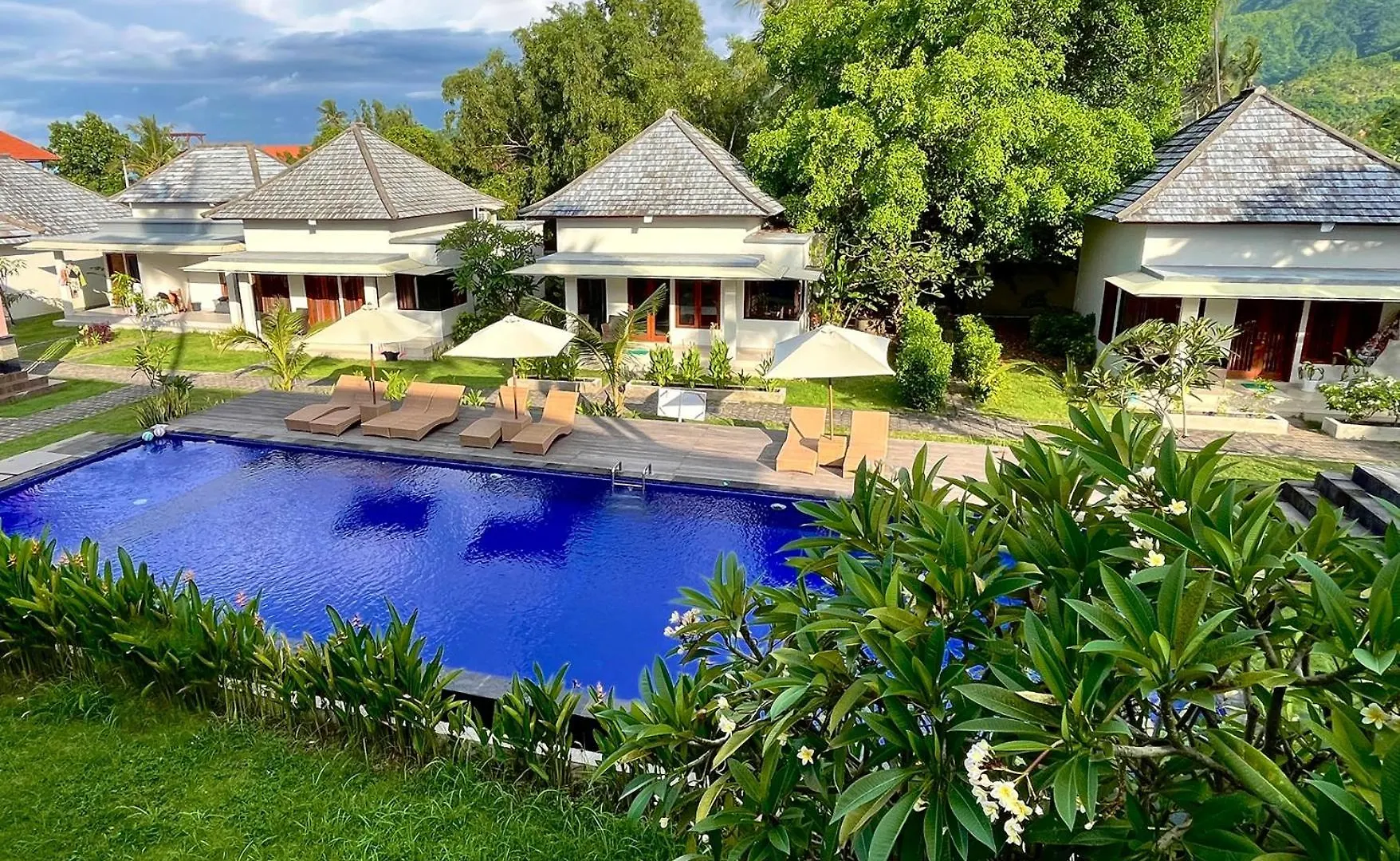 Innerhalb von 10 Minuten zu Fuß gelangt man ins Zentrum von Amed. Das Schiffswrack von Amed ist 10 Minuten Autofahrt entfernt gelegen. Bis zum Lempuyang-Tempel sind es nur rund 7 km von Minuten zu Fuß.